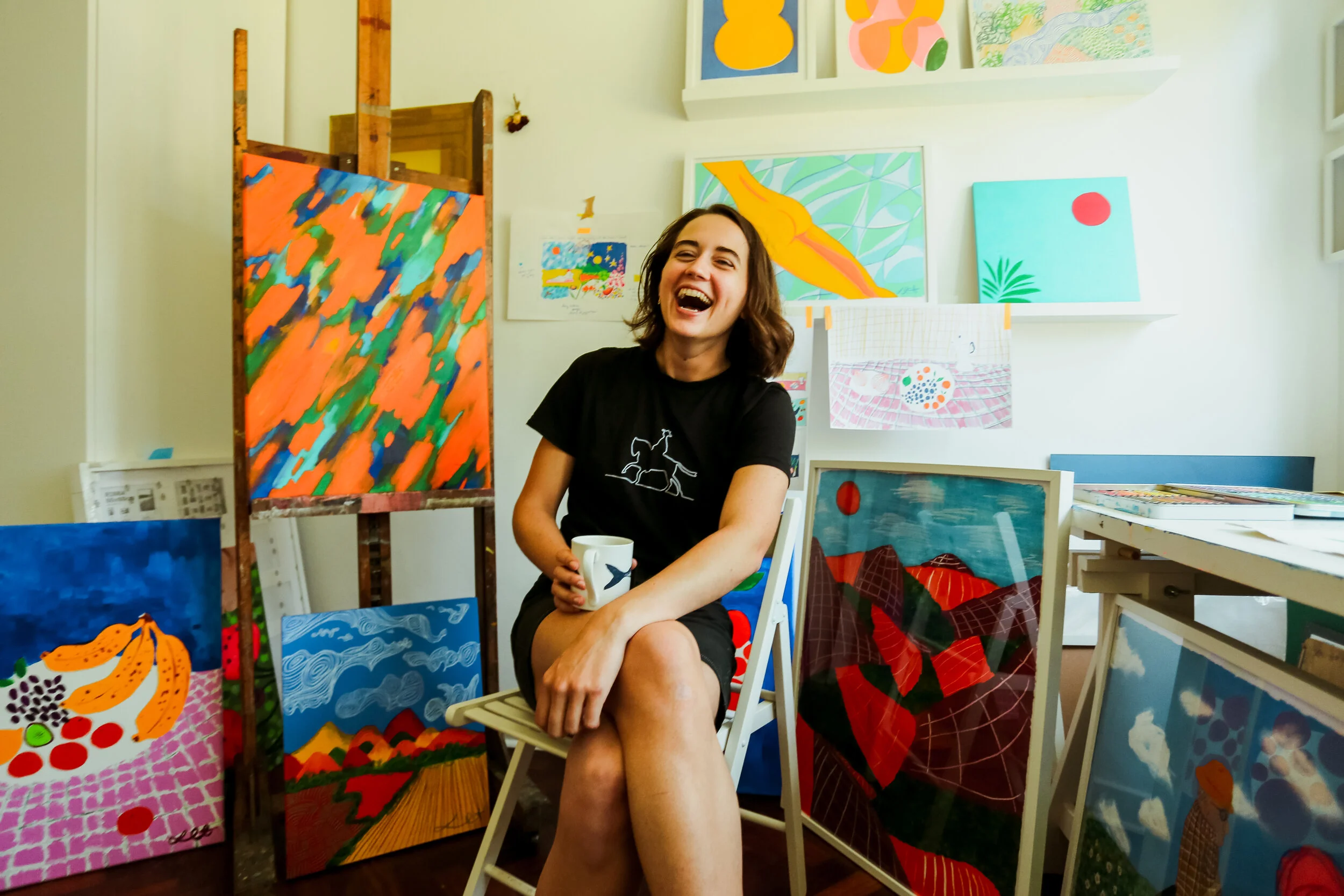 Lily Rose Grant is an artist and art educator based in North London. She works from her studio (a converted garage in her garden) to produce paintings, drawings and screen prints drenched in bright colours and filled with joy and a sense of calm.