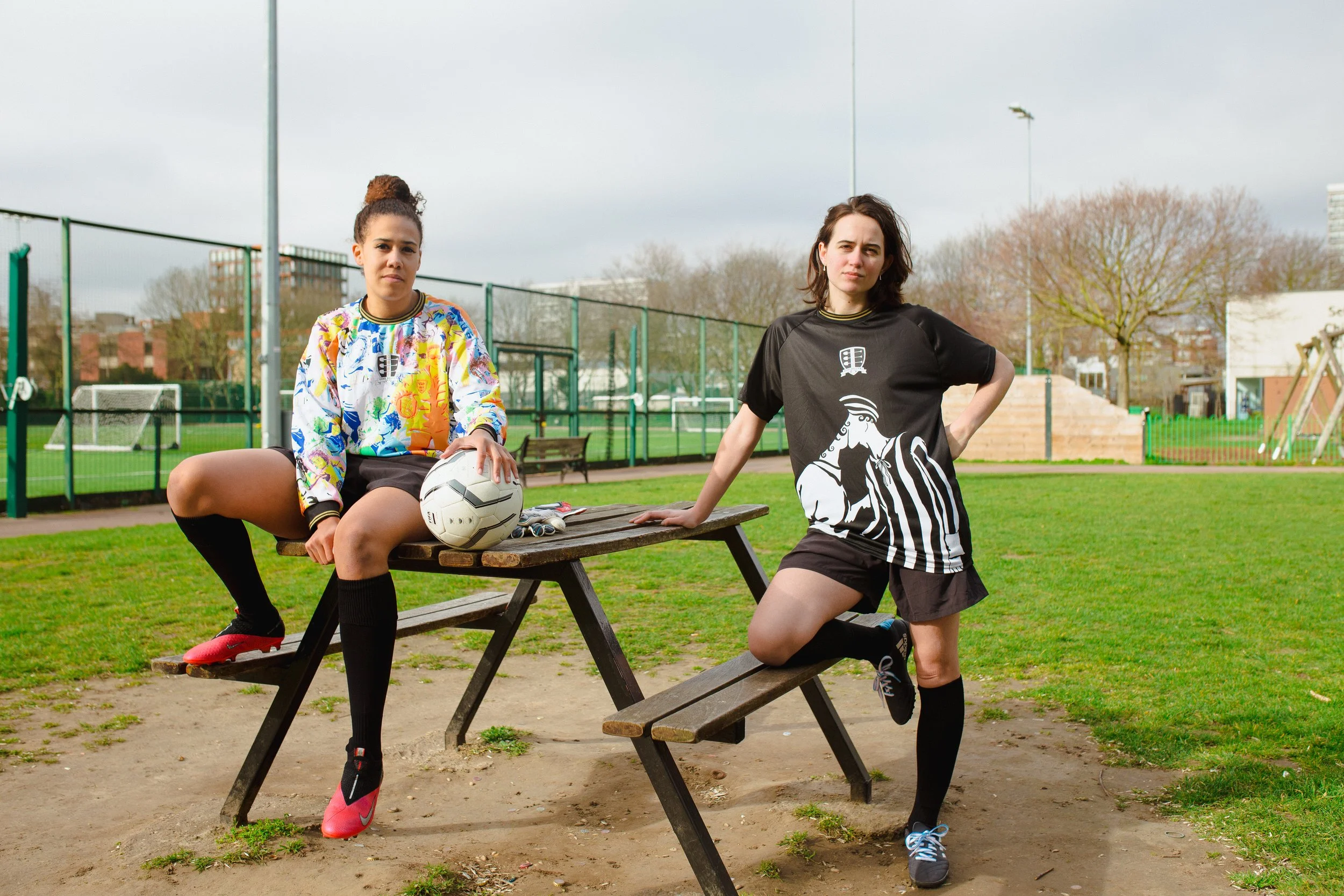 The final shirt designs feature a large ‘1921’ in lieu of individual numbers. We wanted to draw attention to the date we were commemorating. The omission of individual numbers also contravenes FA regulations, so it felt fitting, as the kit is a protest against a decision made by the FA 100 years ago. Having all of our members wear the same number on the back of the shirt also accentuates the fact that we are a collective, not a collection of individuals.